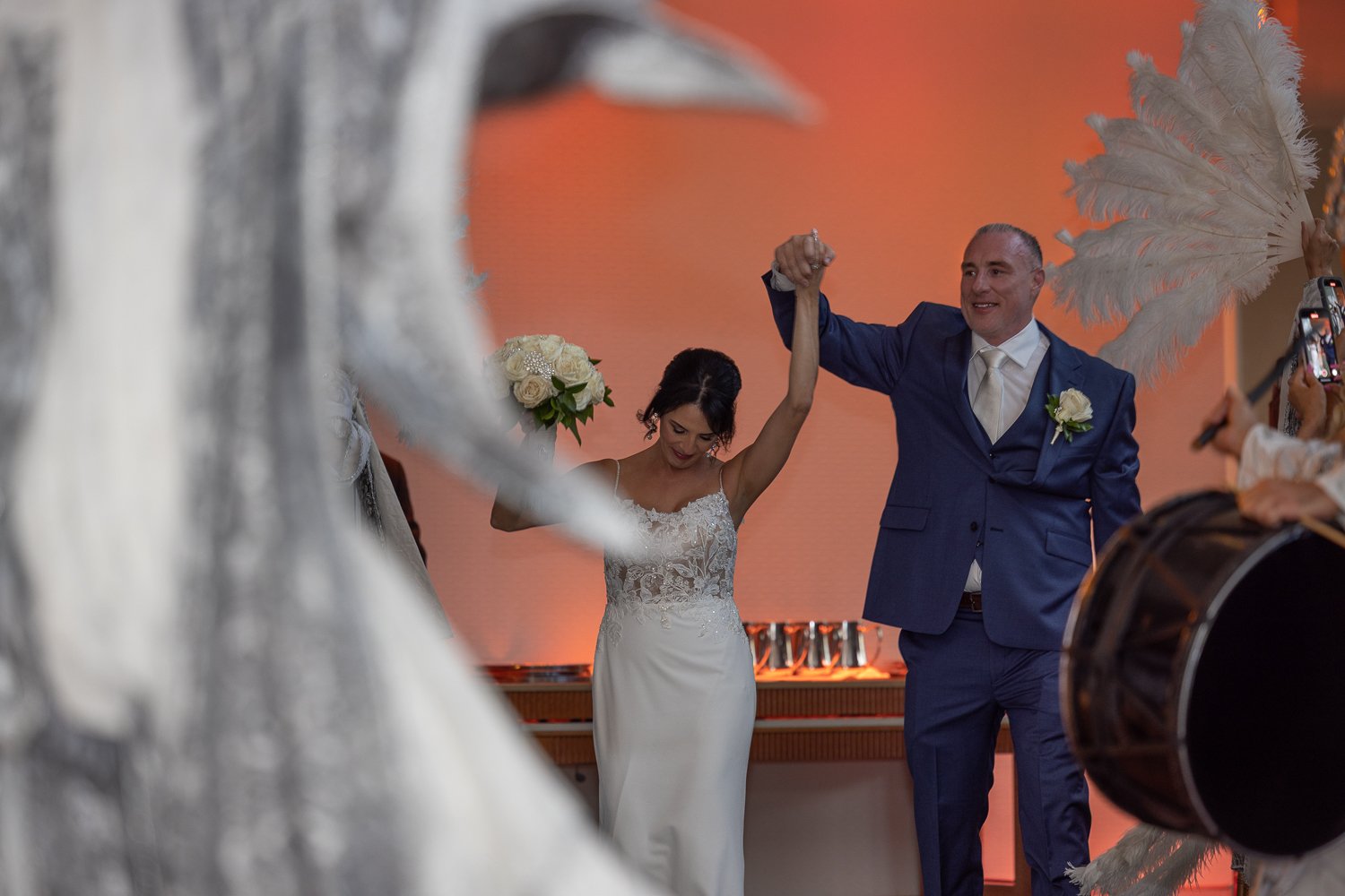 During the ceremony, the couple read vows to each other that were personal and touching. The reception, which took place inside the Lighthouse Ballroom, elegantly blended Catholic and Palestinian traditions. There were traditional Middle Eastern dancing performances and fantastic food throughout for the guests to enjoy. BKB was able to capture these fun moments as well as the stunning decorations throughout the ballroom. It was done with a beautiful palette of green that complemented the floor-to-ceiling windows perfectly.